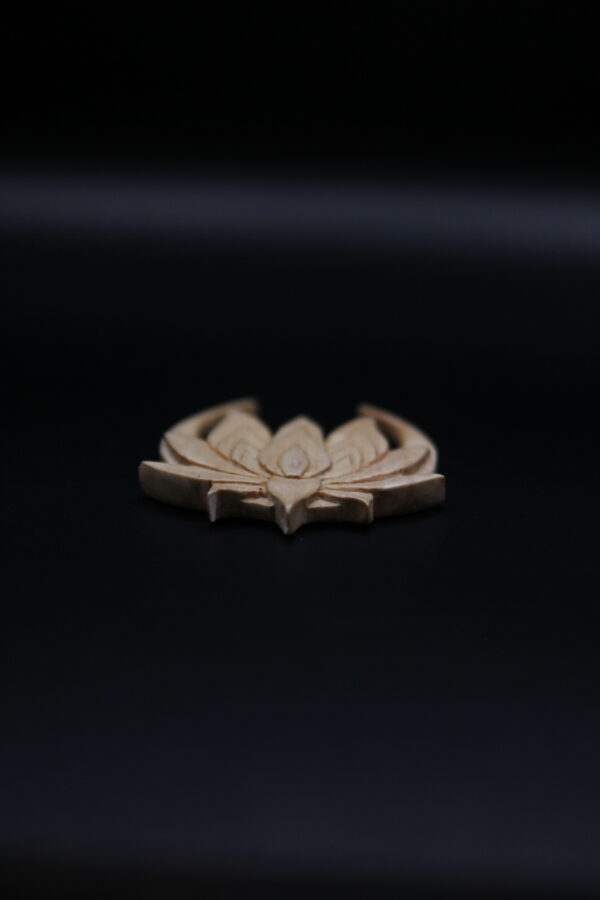 A poetic hand-carved pendant featuring a blooming lotus flower resting on a crescent moon, carved from smooth, pale pear wood. The intricate petal details and the gentle curve of the moon create a dreamy, celestial composition. Each line and curve is hand-shaped, making every piece unique. A meaningful pendant that symbolizes growth, beauty, and the magic of the night sky.