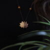 Tiny hand-carved lotus flower pin in light natural wood with beautiful grain, delicate and versatile.