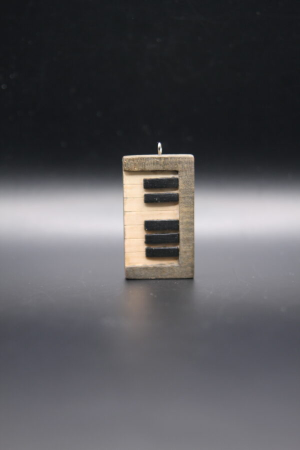 Hand-carved piano keys pendant in contrasting light and dark woods, a unique piece for music lovers.