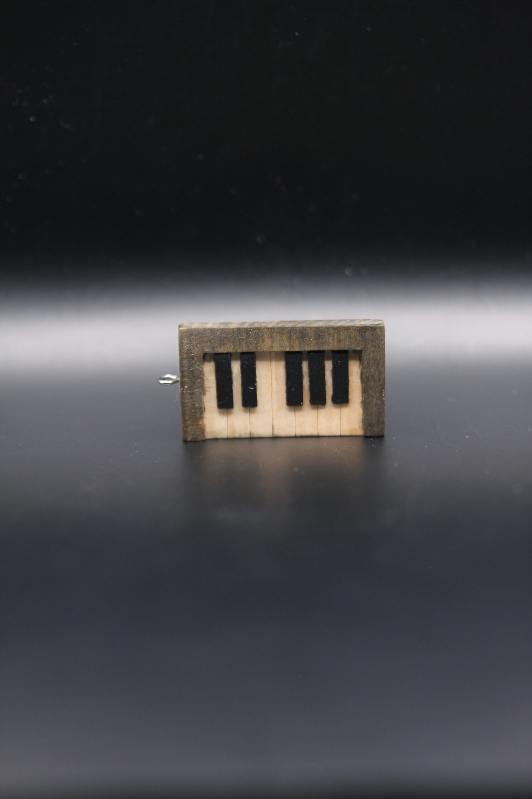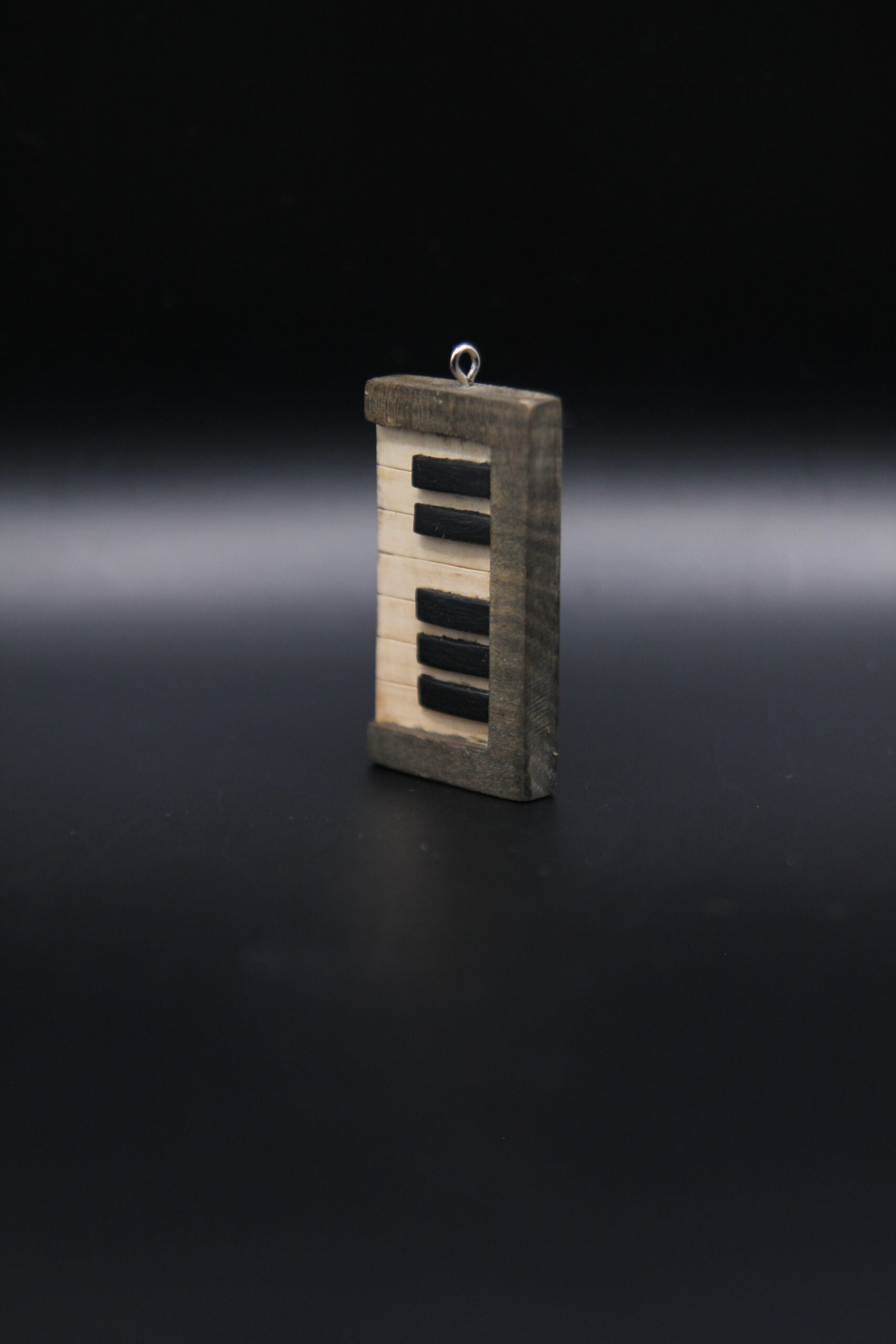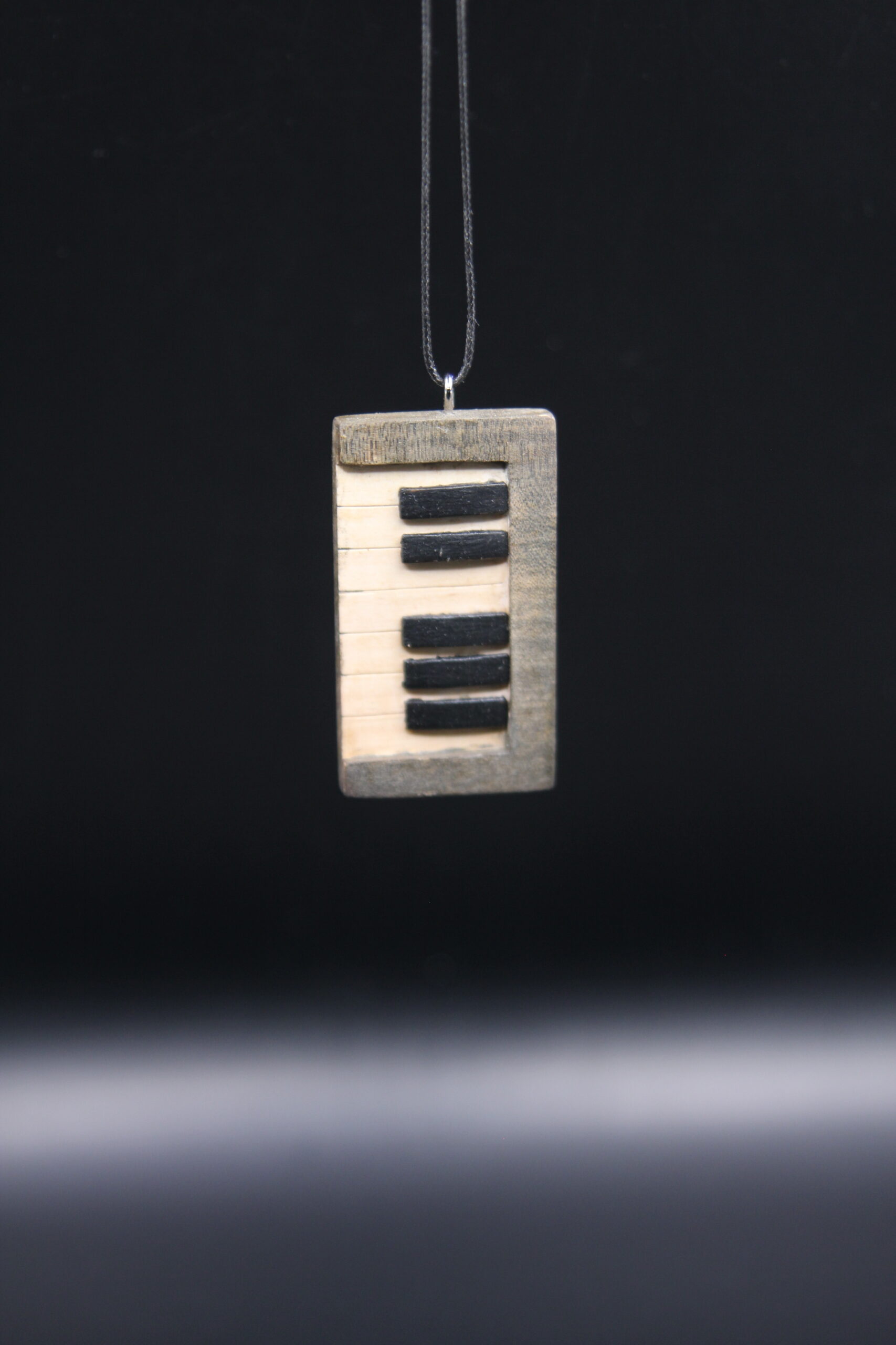 Hand-carved piano keys pendant in contrasting light and dark woods, a unique piece for music lovers.