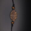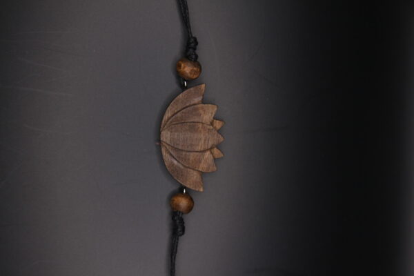 Petite hand-carved lotus flower pendant in walnut wood on a cord, a symbol of purity and elegance.