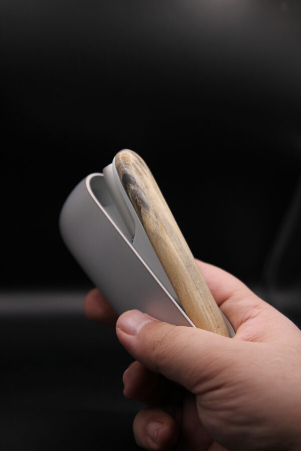 A handcrafted wooden holder designed to cradle and protect your IQOS device in style. Carved from walnut wood with a smooth, polished finish, this holder features a precisely shaped cavity that snugly fits the device. The rich, dark grain of the walnut gives it a premium, natural aesthetic that elevates your everyday carry. Compact and lightweight, it’s both a functional accessory and a miniature work of art.